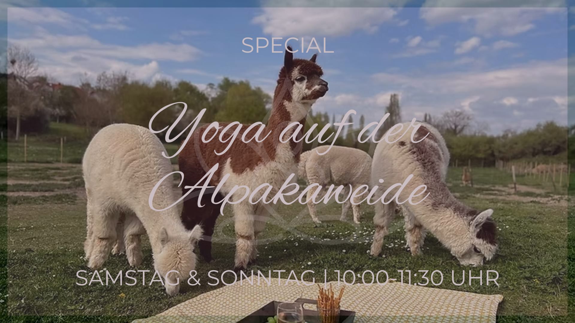 Wir üben sanftes Hatha Yoga – achtsam, entspannt und für alle Level geeignet. Die flauschigen Alpakas begleiten uns dabei mit ihrer ruhigen Art und schenken zusätzliche Gelassenheit und Erdung. Erfahre außerdem Wissenswertes über diese besonderen Tiere und genieße im Anschluss einen kühlen Secco (auch alkoholfrei oder Alternative) direkt auf der Weide bei den Flauschbuben in Bubenheim. Damit Du diesen besonderen Moment nicht nur im Herzen behältst, kannst Du ihn auf Wunsch auch in zauberhaften Erinnerungsfotos mit unseren Alpakas festhalten..